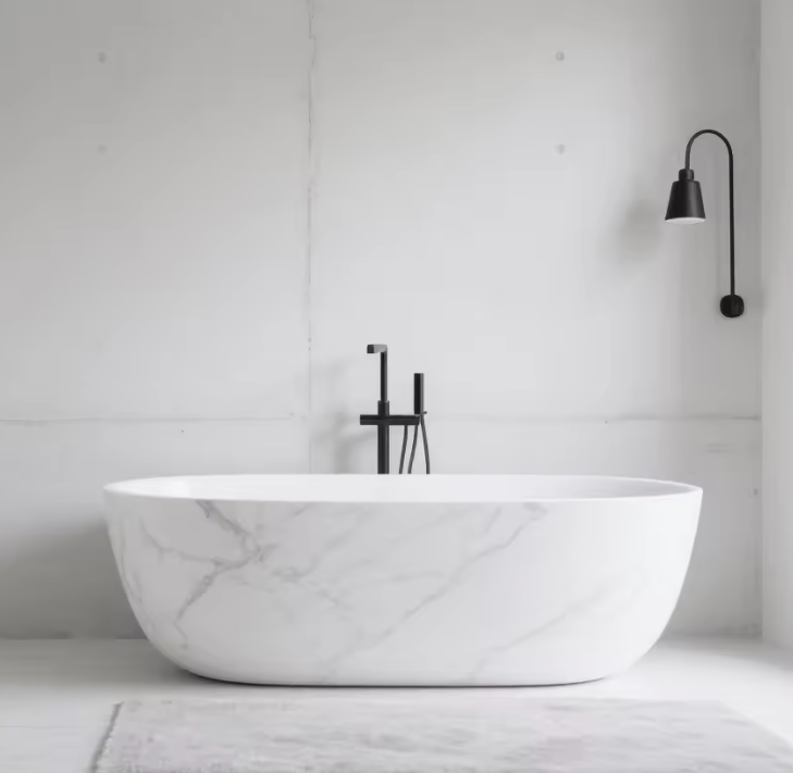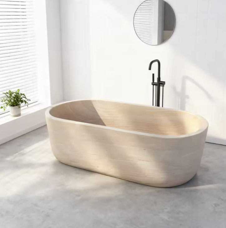 High-Quality Modern Freestanding Soaking Bathtub – Hand-Carved Natural Stone, Ideal for Home & Villa Bathrooms