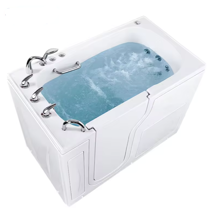 Barrier-Free Acrylic Walk-In Bathtub for Elderly – Constant Temperature, Massage & Soaking Functions with Interior Entry Door